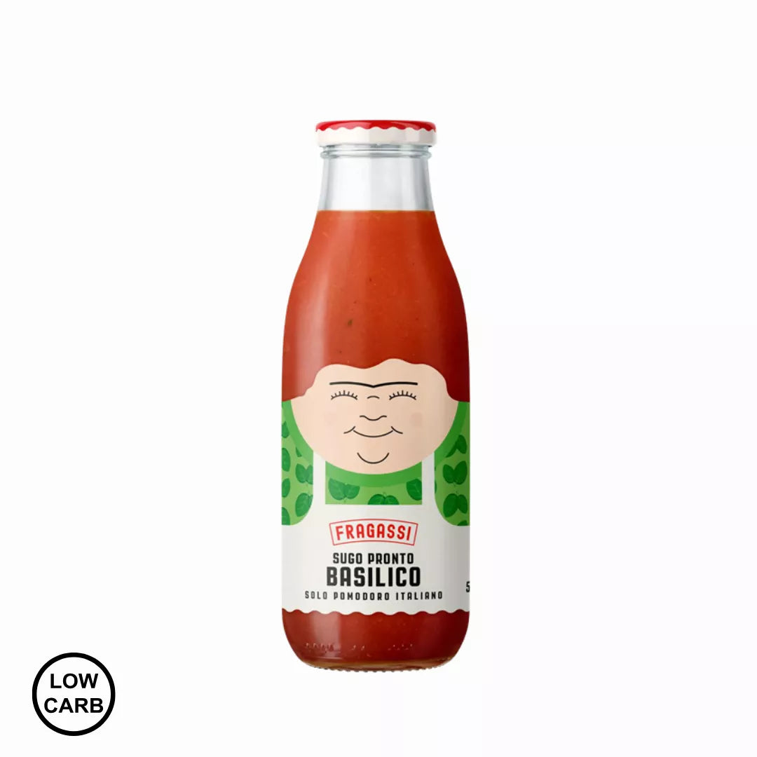 Omaka Fragassi Basilico združuje sočne italijanske paradižnike, baziliko, česen in ekstra deviško oljčno olje – nič več, nič manj. 🌿