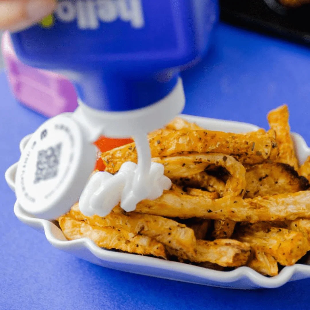 Hello Taste majoneza je lahka, kremasta in noro okusna. Popolna za pomfri, sendviče, solate in še več – brez slabe vesti!