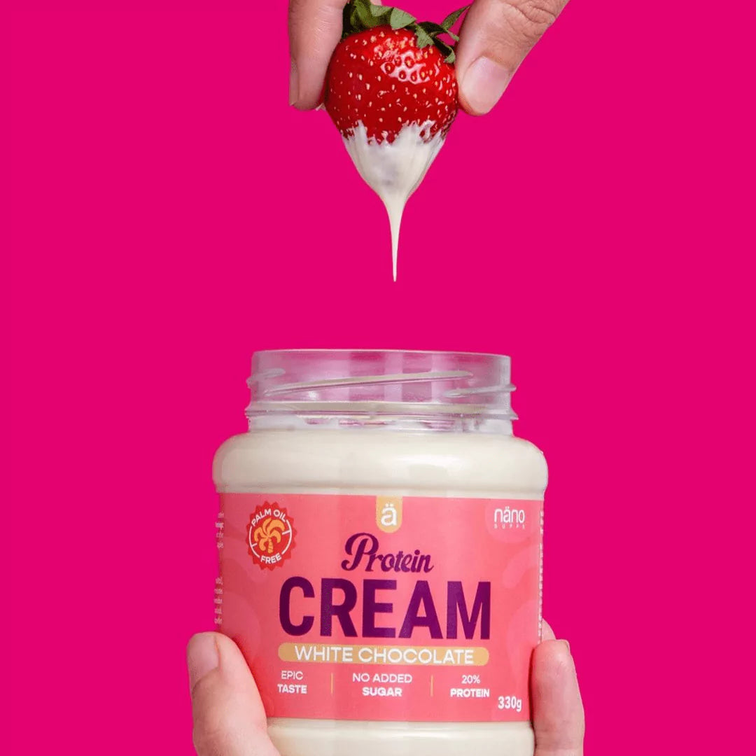 Naša proteinska krema z belo čokolado je slastna in hkrati prehransko uravnotežena izbira za vse ljubitelje čokolade, ki želijo obogatiti svojo prehrano z beljakovinami.