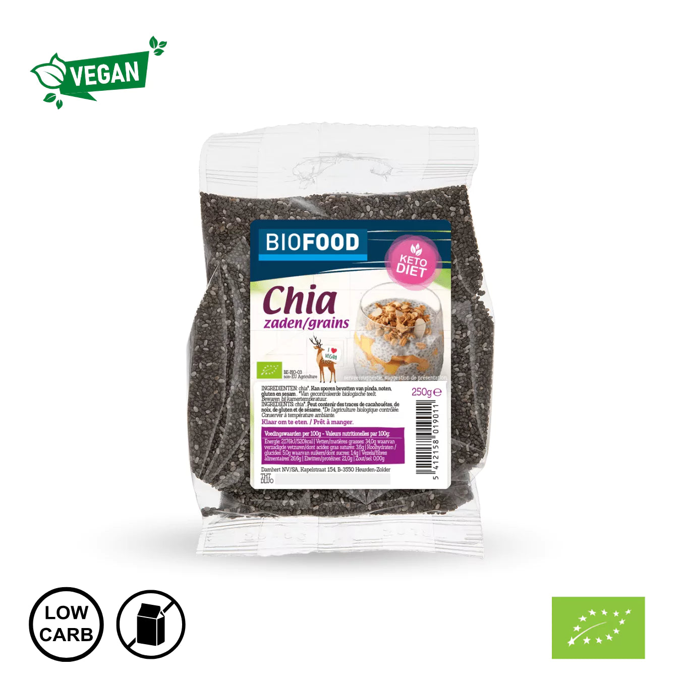 Chia semena vsebujejo veliko prehranskih vlaknin, zato so priljubljena izbira v low carb, keto, vegan in fit prehrani. Uporabi jih kot topping za solate, jogurt, smoothie, kaše ali mueslije, odlično pa se obnesejo tudi kot dodatek v testo za kruh, kjer poskrbijo za dodatno hrustljavost in hranilno vrednost. 😊