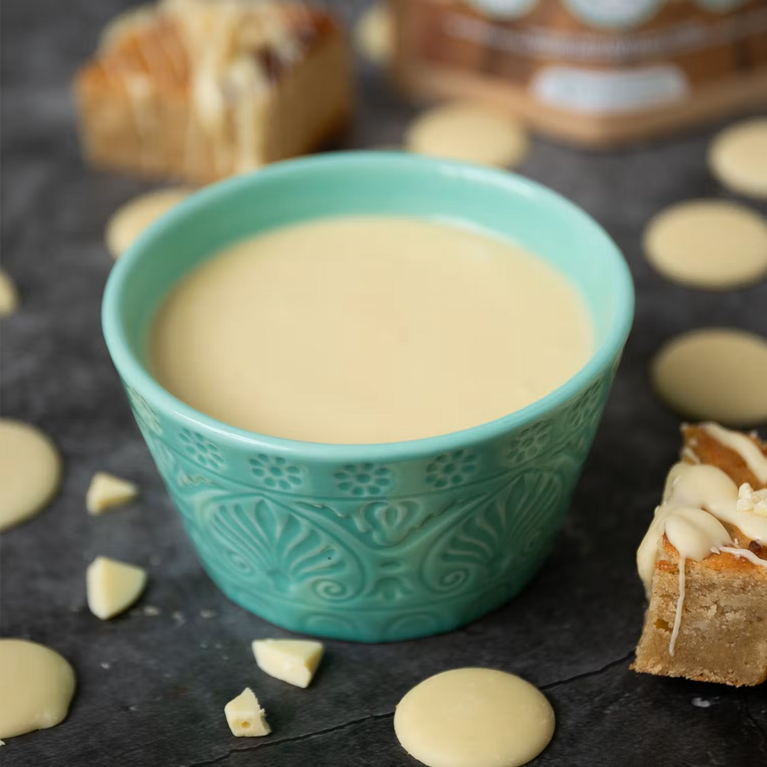 Kakavovo maslo, polnomastno mleko v prahu (25 %), sladila: eritritol, steviol glikozidi (0,027 %), posneto mleko v prahu (15 %), inulin, emulgator: sončnični lecitin, naravna aroma vanilije.